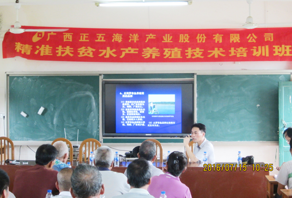 7月15日,農(nóng)業(yè)產(chǎn)業(yè)化重點(diǎn)龍頭企業(yè)正五海產(chǎn)公司聯(lián)合市農(nóng)業(yè)局和水產(chǎn)畜牧獸醫(yī)局,來到銀海區(qū)四條貧困村之一的福成鎮(zhèn)大坎村舉辦“精準(zhǔn)扶貧水產(chǎn)養(yǎng)殖技術(shù)培訓(xùn)班”。來自大坎村委的貧困戶及水產(chǎn)養(yǎng)殖戶踴躍參加了培訓(xùn)。
